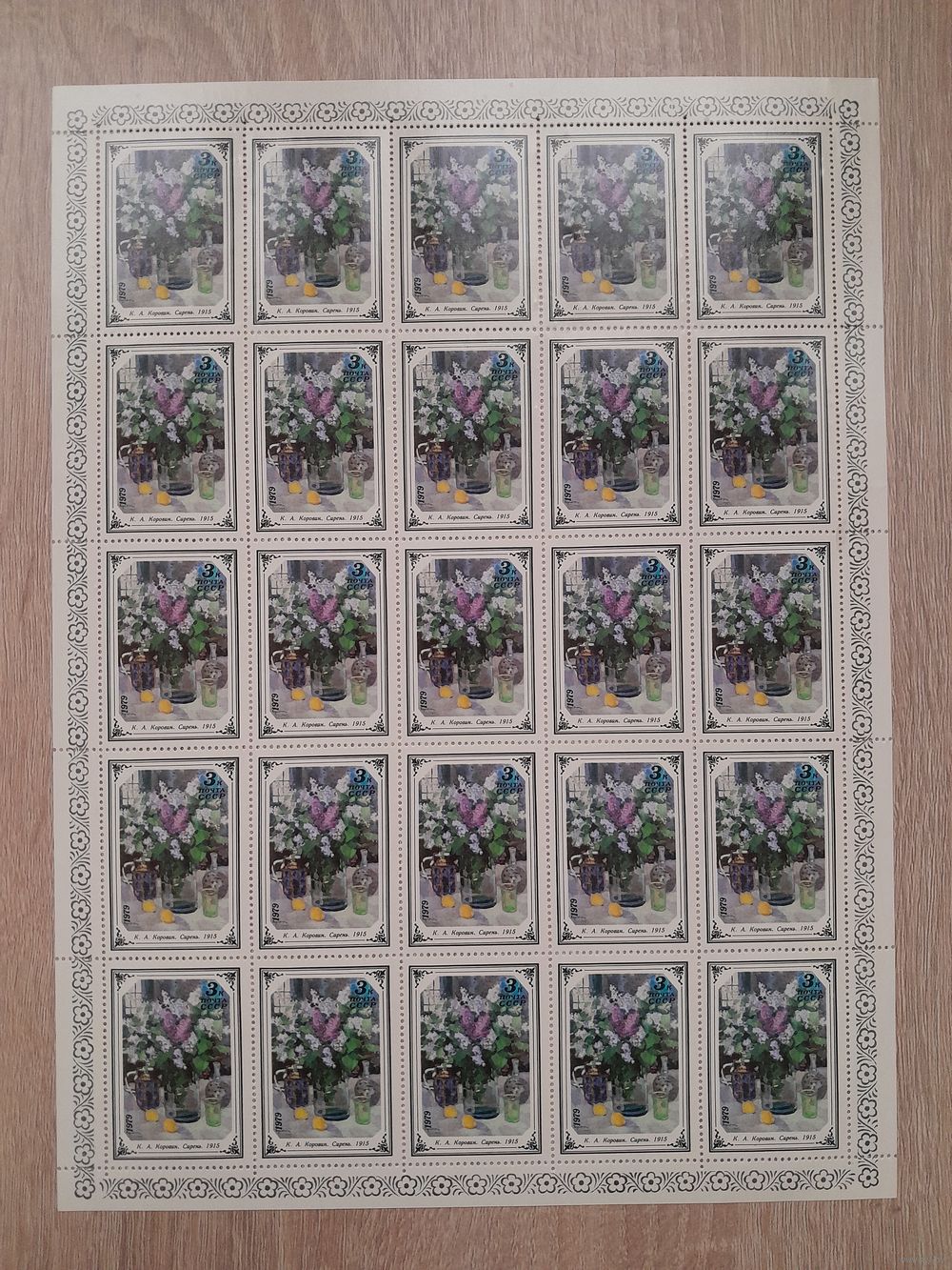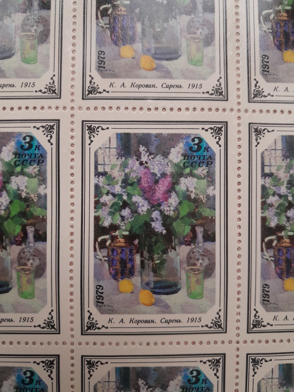 Лист 1979 г. Цветы в живописи 3 к.