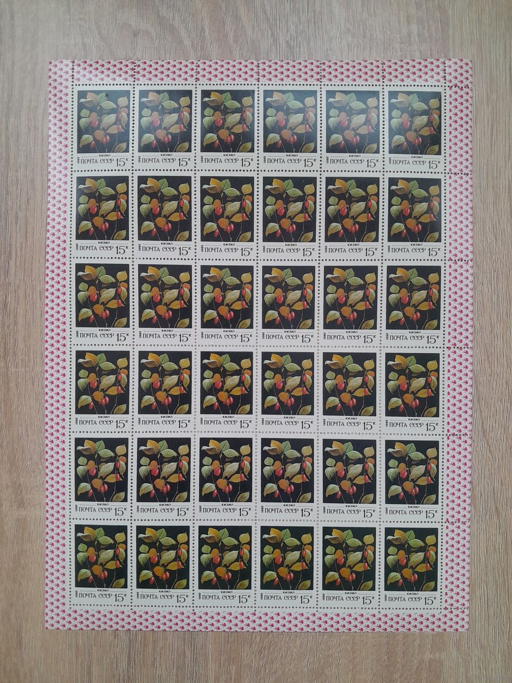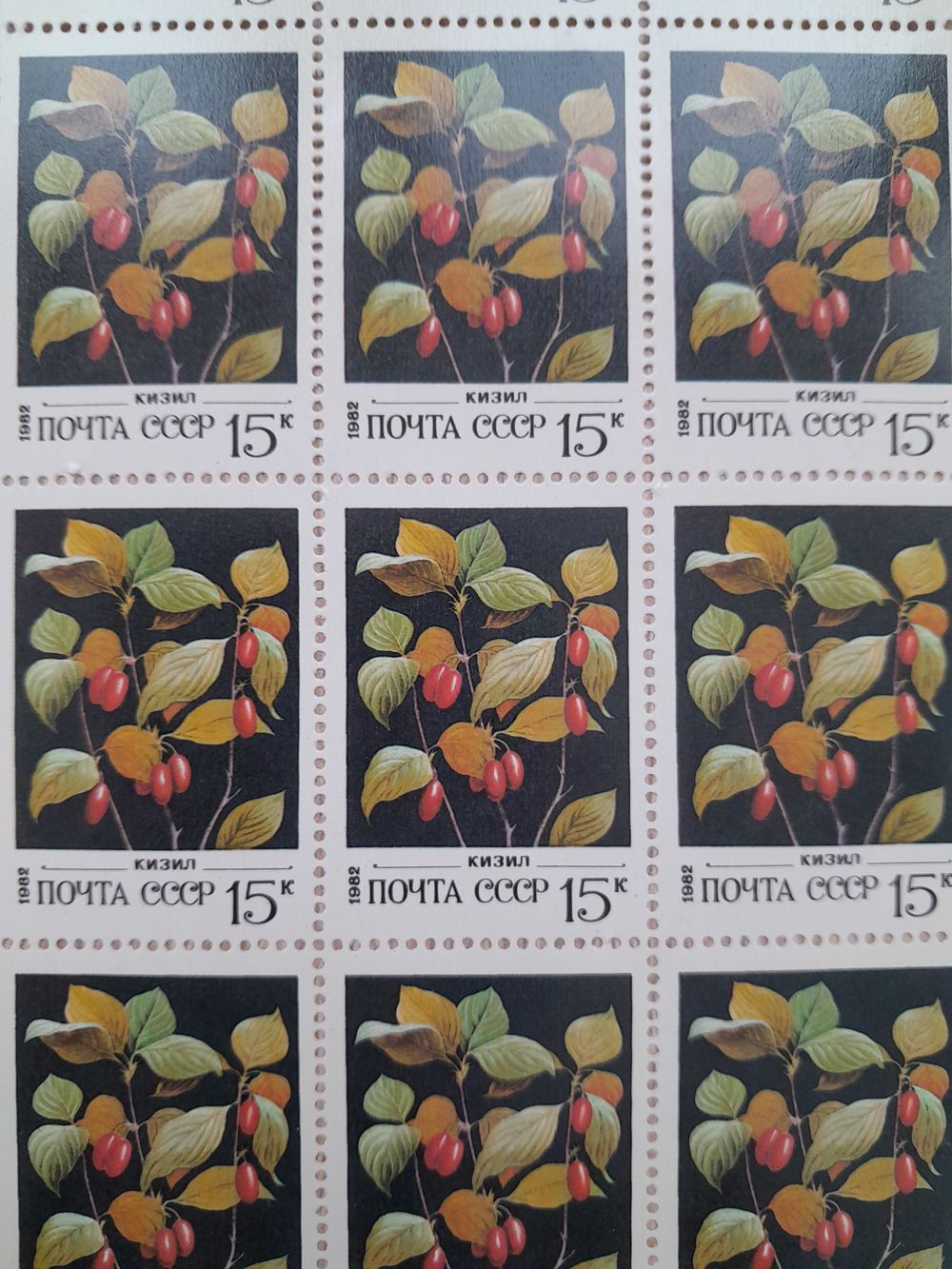 Лист 1982 г. Дикорастущие ягоды. Кизил 15 к.