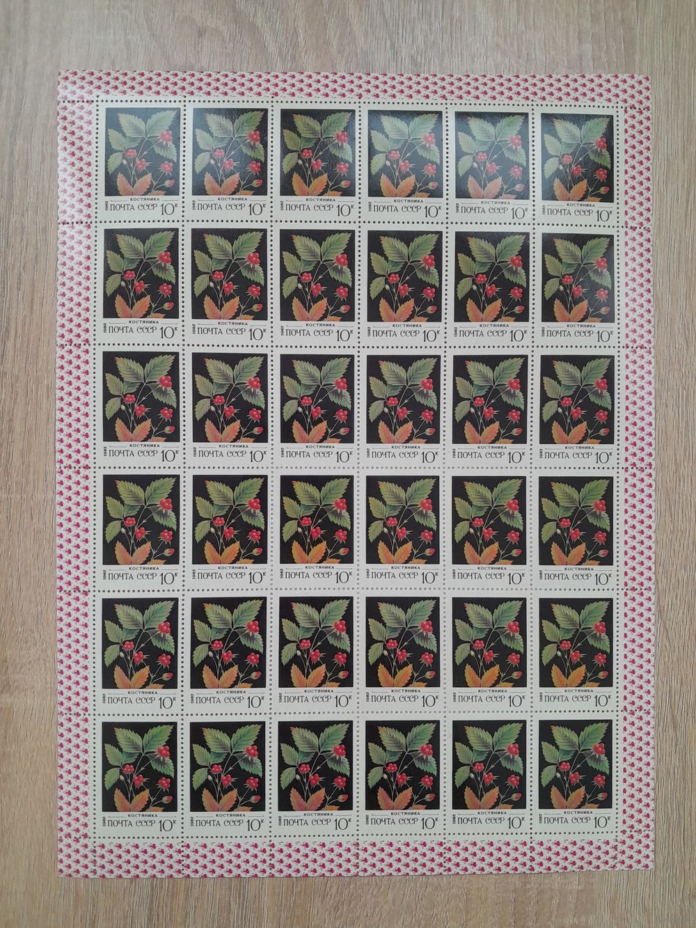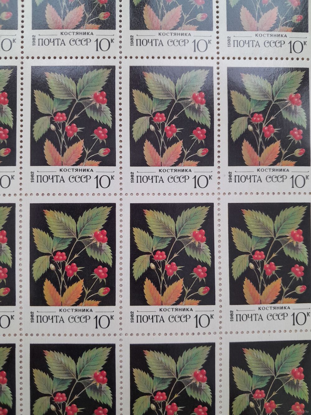 Лист 1982 г. Дикорастущие ягоды. Костяника 10 к.