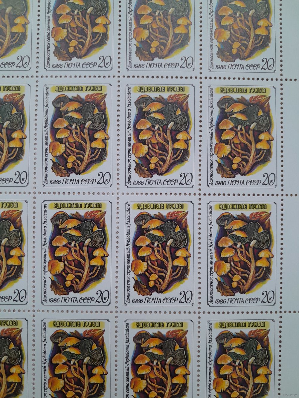 Лист 1986 г. Ядовитые грибы. 20к. Серно-желтый ложноопенок