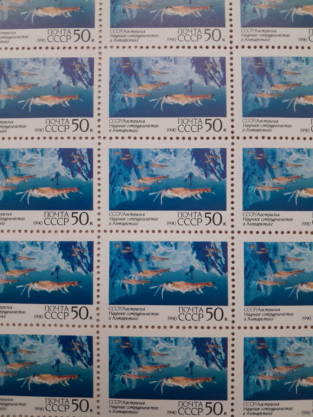 Лист 1990 г. СССР-Австралия . Научное сотрудничество в Антарктике 50 к.