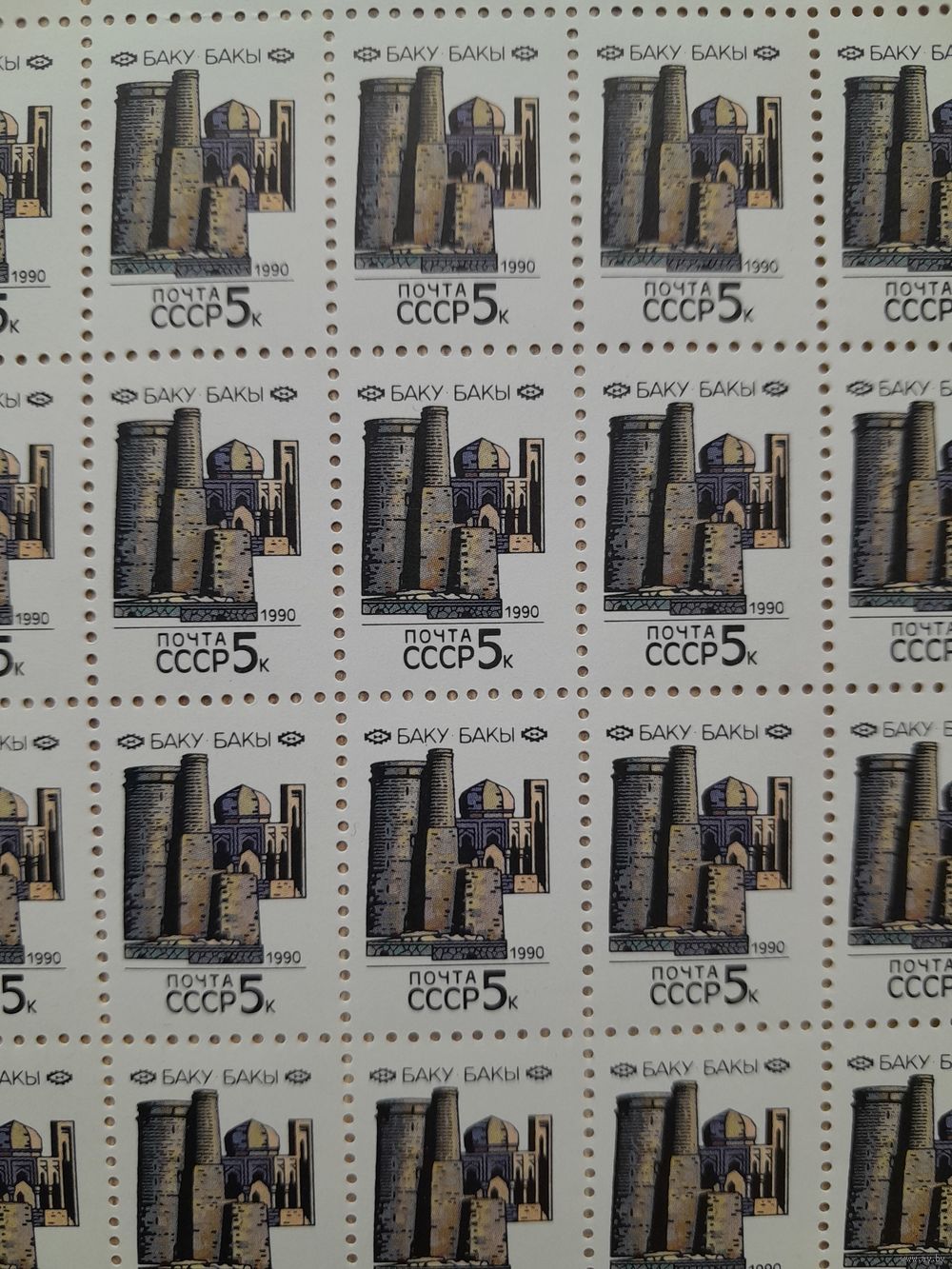Лист 1990 г. Столицы СССР. Баку