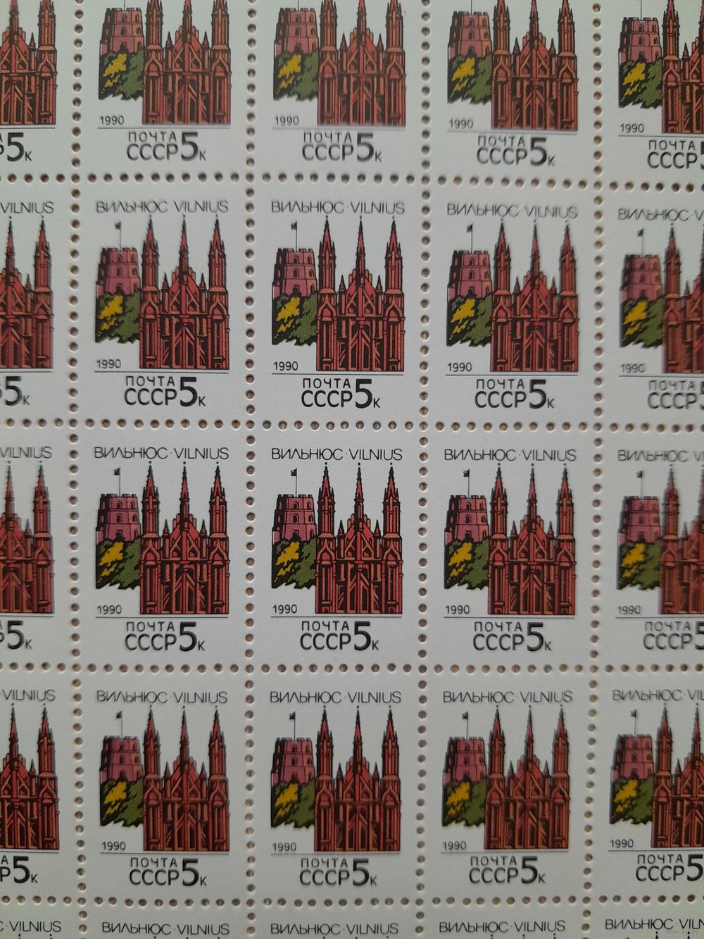 Лист 1990 г. Столицы СССР. Вильнюс