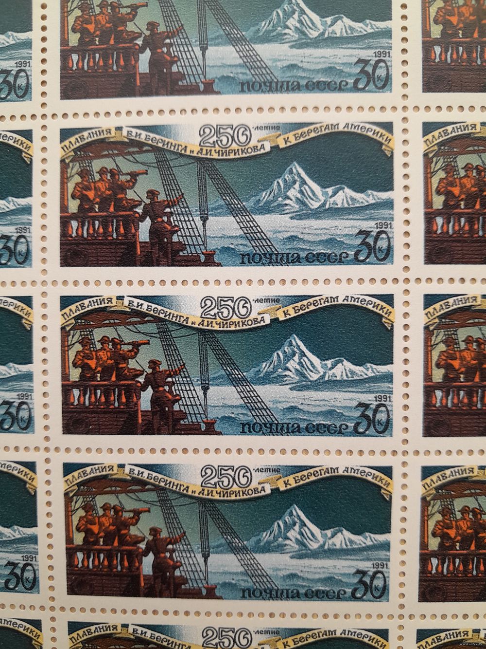 Лист 1991 г. Плавание Беринга и Чирикова к берегам Америки