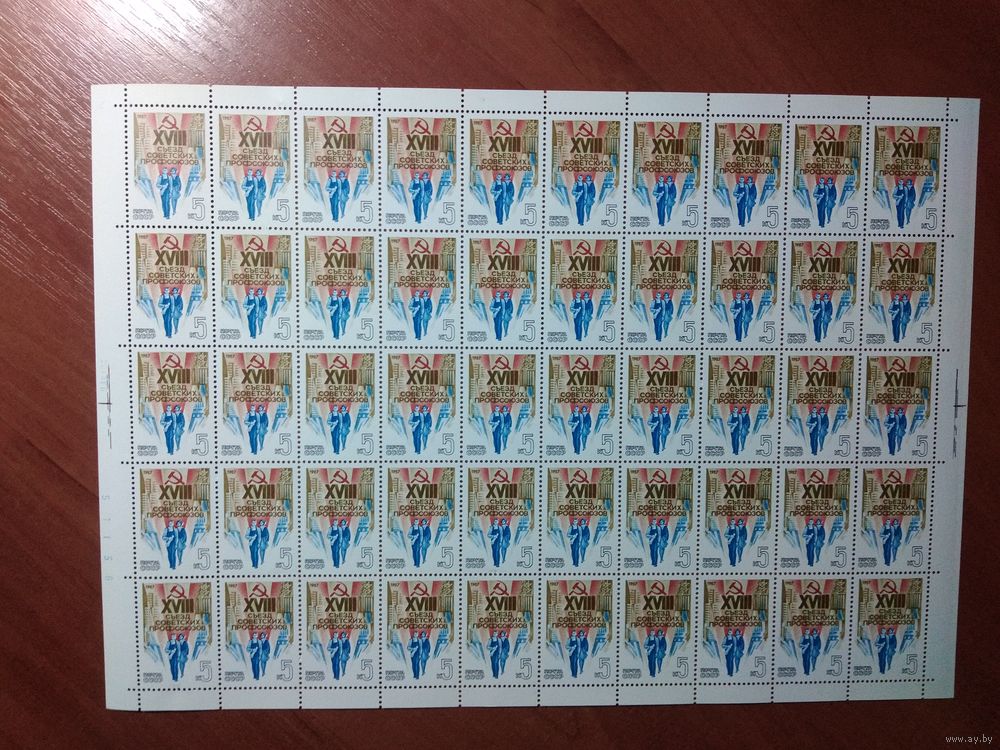 Лист чистых марок СССР 1987. 18 СЪЕЗД СОВЕТСКИХ ПРОФСОЮЗОВ