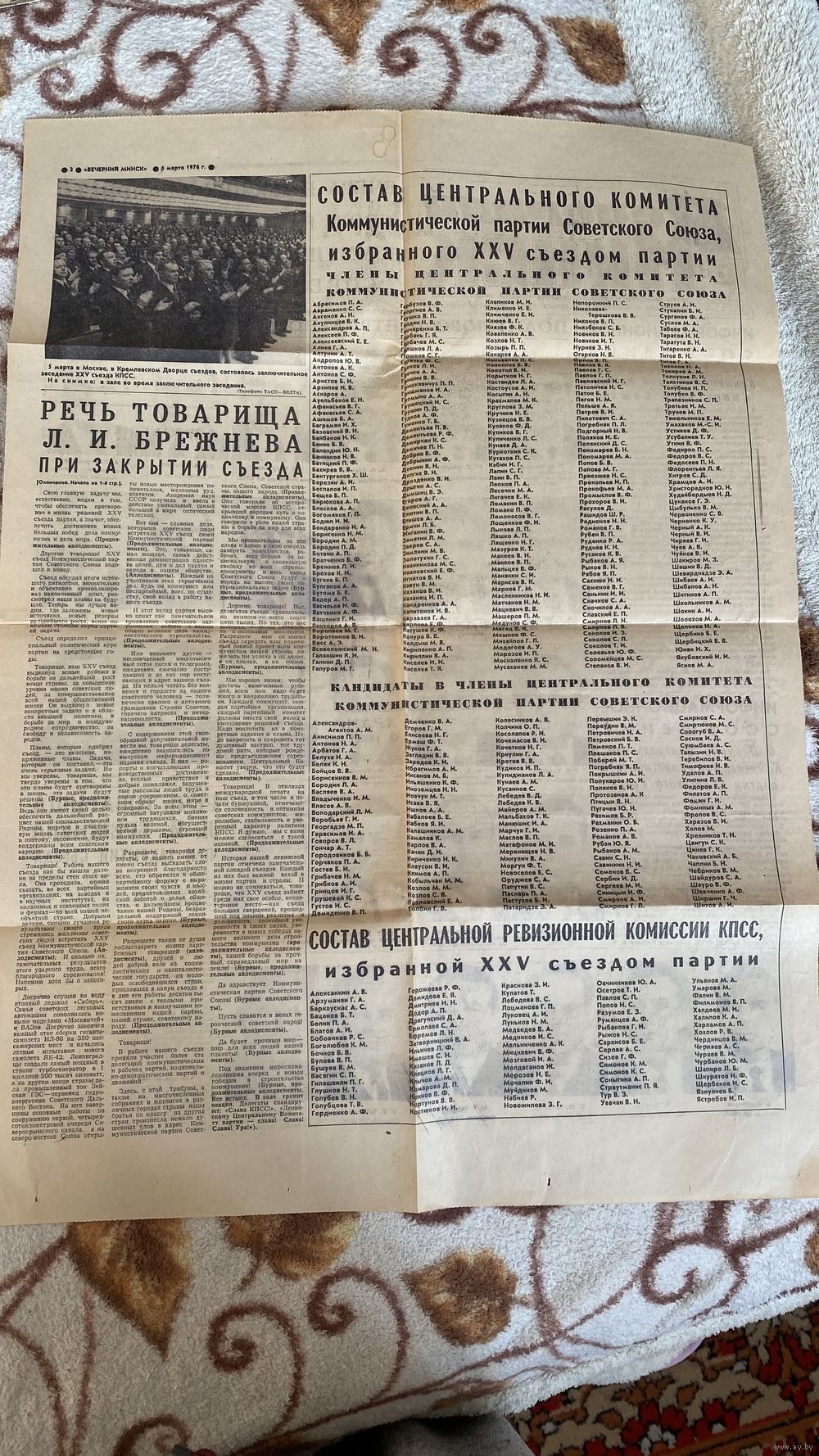 Лист газеты Вечерний Минск 6.03.1976. Закрытие 25 съезда кпсс