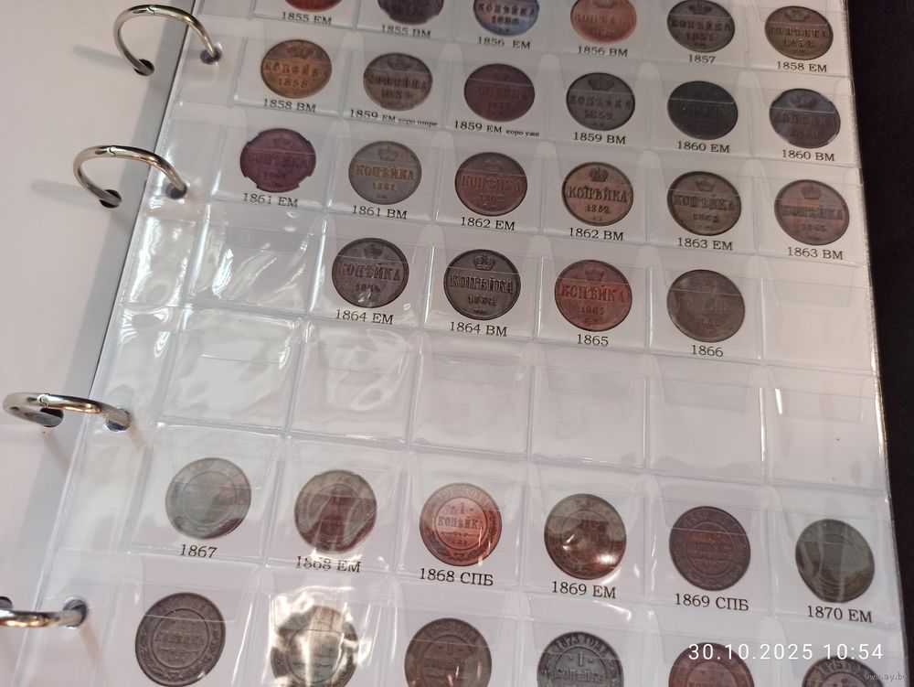 Формат Оптима. Под листы на 48 ячеек. Информационный лист с изображением медных монет 1 копейка Александра ll. Самоделка. Распечатана на фотобумаге. Фото с ячейками для примера.