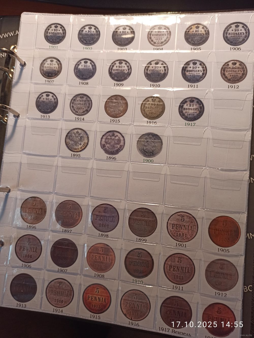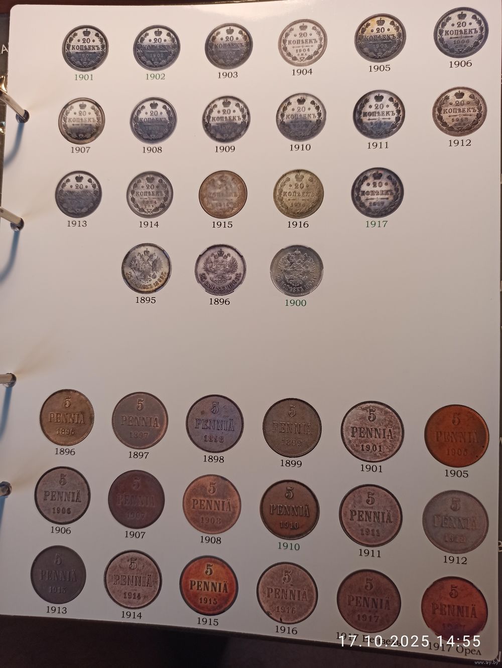 Формат Оптима. Под листы на 48 ячеек. Информационный лист с изображением монет Николая II. Самоделка. Распечатана на фотобумаге. Фото листа с ячейками для примера