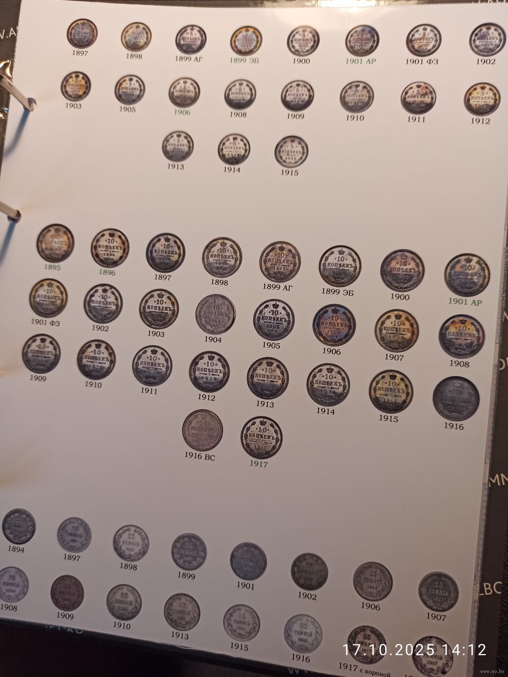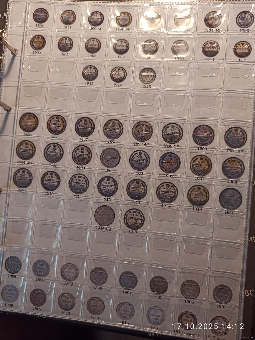 Формат Оптима. Под листы на 88 ячеек. Информационный лист с изображением серебряных монет правления Николая II. Самоделка. Распечатан на фотобумаге. Фото листа с ячейками для примера