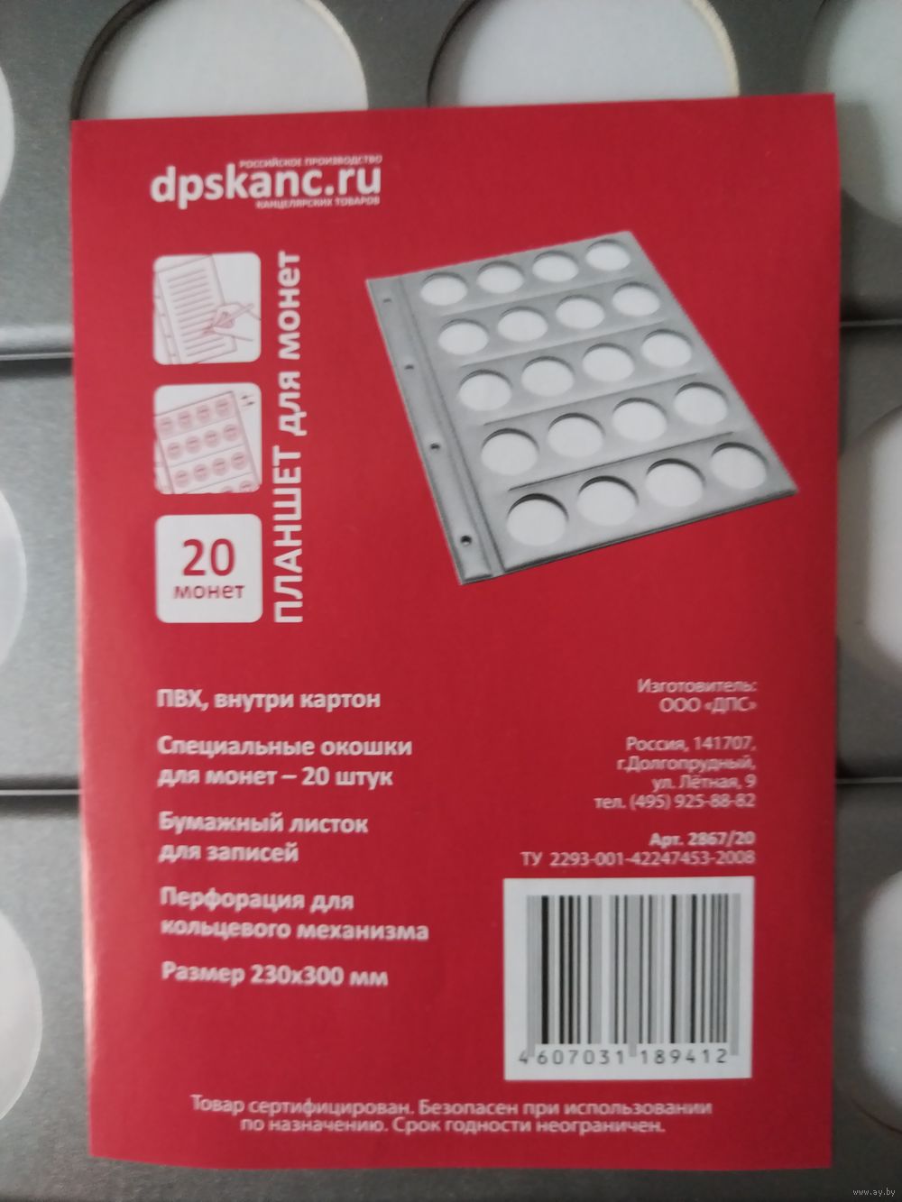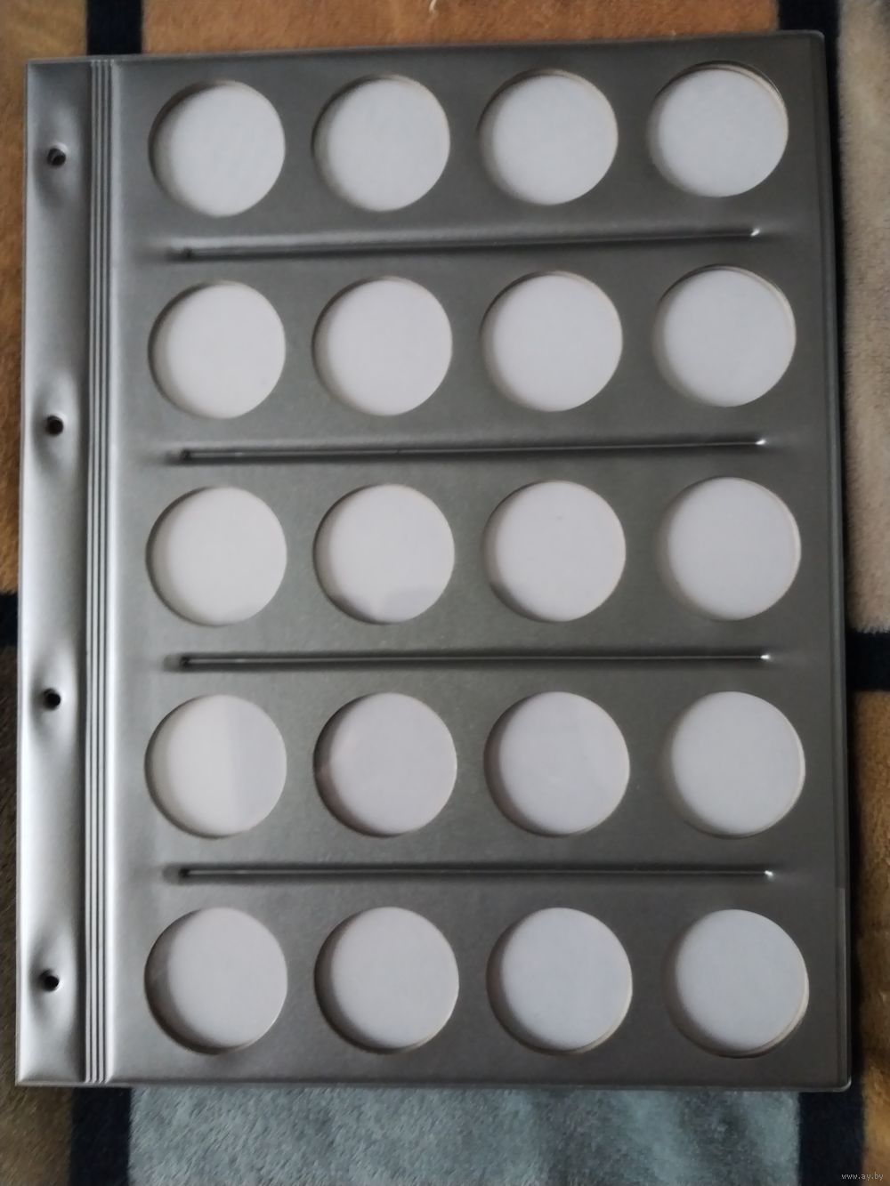 | Планшет - предназначен для хранения монет, как в капсулах, так и без них. Удобен при транспортировке. Размер ячеек : Ф -40 мм. Имеется лист-вкладыш. | |