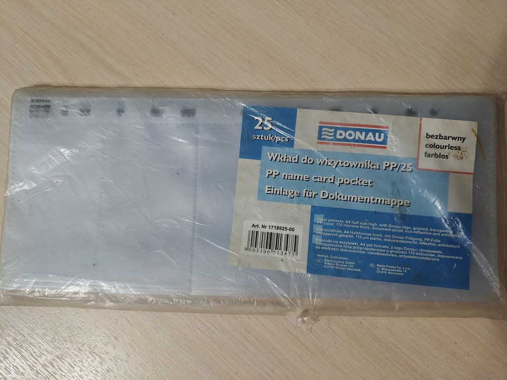 | Упаковка не вскрывалась, но имеет потёртости. Для хранения визиток, телефонных и скидочных карт, наград и т п. В упаковке 25 листов по 5 ячеек. Размеры листа 315 Х 125 мм. Размер ячейки 110 х 60 мм. | |