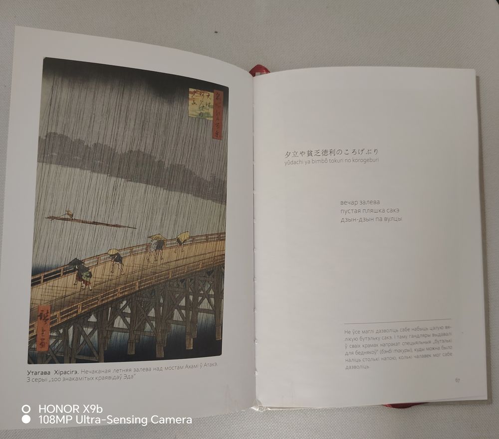 Оригинадьное издание на белорусском языке, классическая японская поэзия, хокку известного японского поэта Кабаяси Исса с великолепными гравюрами средневековых художников. Состояние нового.