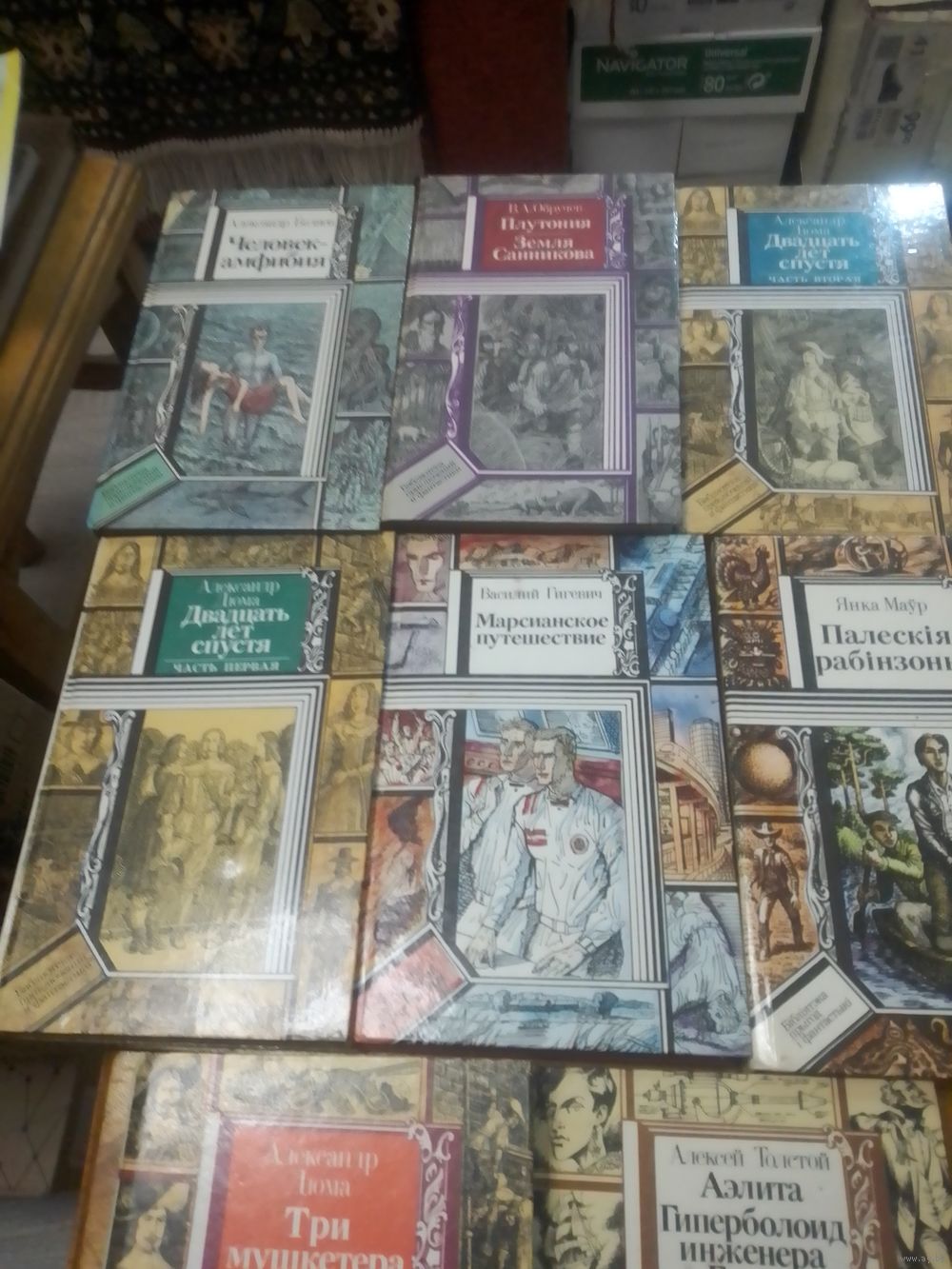 Отдельная фотография по запросу. Дюма Двадцать лет спустя.и Три мушкетера.Толстой Гиперболоид инженера Гарина. Гигевич Марсианское путешествие Маур Полесские рабинзоны Беляев Человек амфибия Обручев Плутония и Земля Санникова.