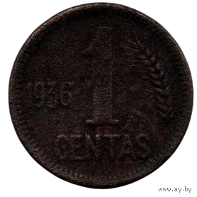 ЛИТОВСКАЯ РЕСПУБЛИКА. ПЕРВАЯ РЕСПУБЛИКА. 1 ЦЕНТ 1936. ПАГОНЯ. РЕДКАЯ.