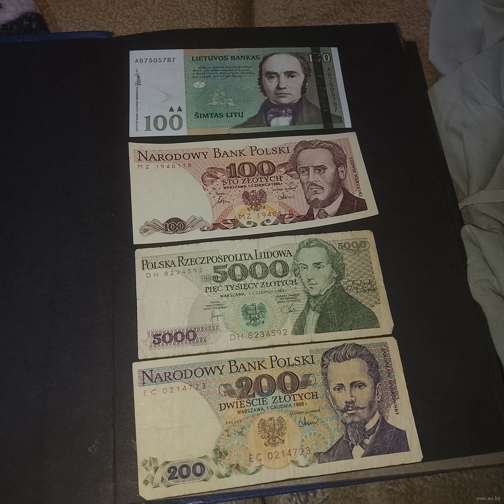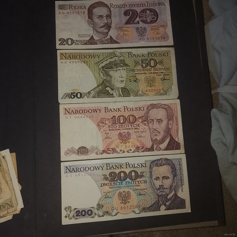 Польские деньги , некоторые из купюр в нескольких экземплярах