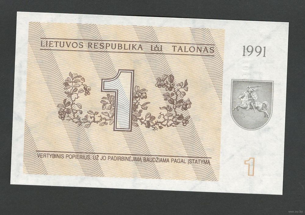 Литва 1 талон 1991 года. С текстом. Тип Р-32b. Состояние UNC