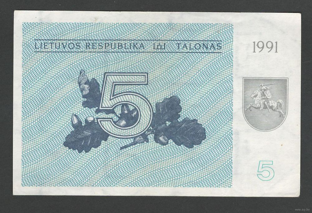 Литва 5 талонов 1991 года. Без текста. Тип Р-34а. Состояние XF+/aUNC