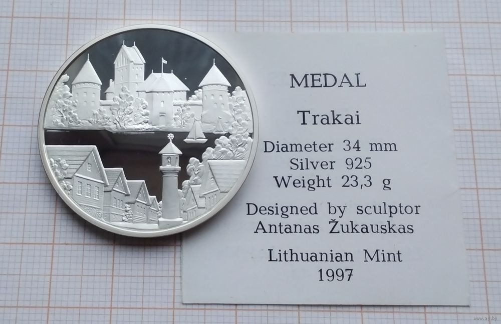 Литовский монетный двор. Зеркальное полированное покрытие (Пруф). Серебро 925 проба. Диаметр - 37 мм. Вес - 23,4 гр. Медаль в пластиковой капсуле. Оплата на карту Беларусбанка.