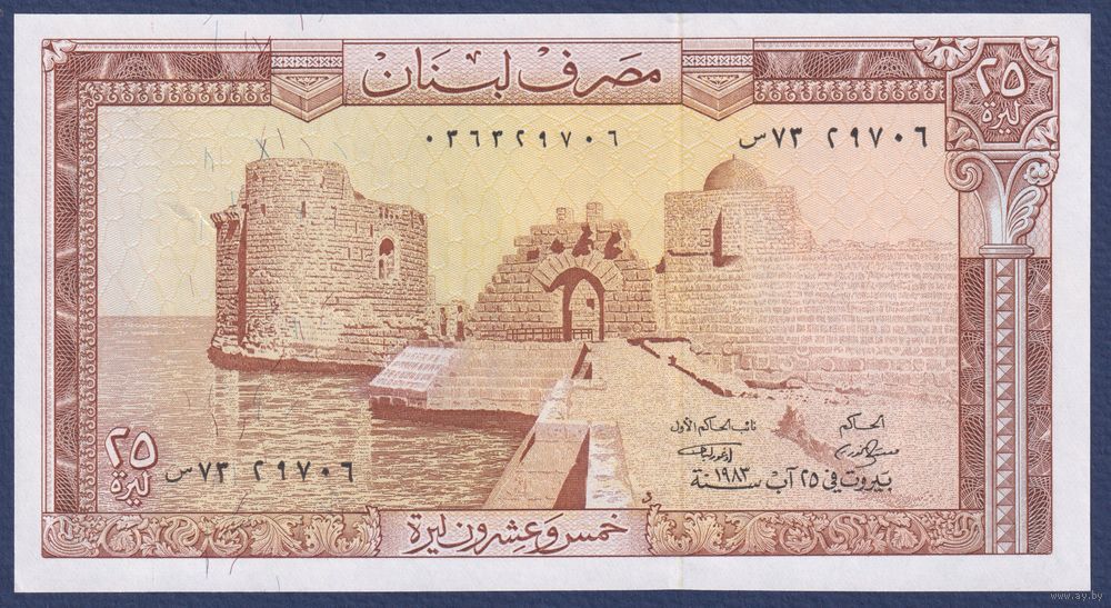 Ливан, 25 ливров 1983 г, P-64c (замок крестоносцев в Сайде, замок Мушайлаха), UNC