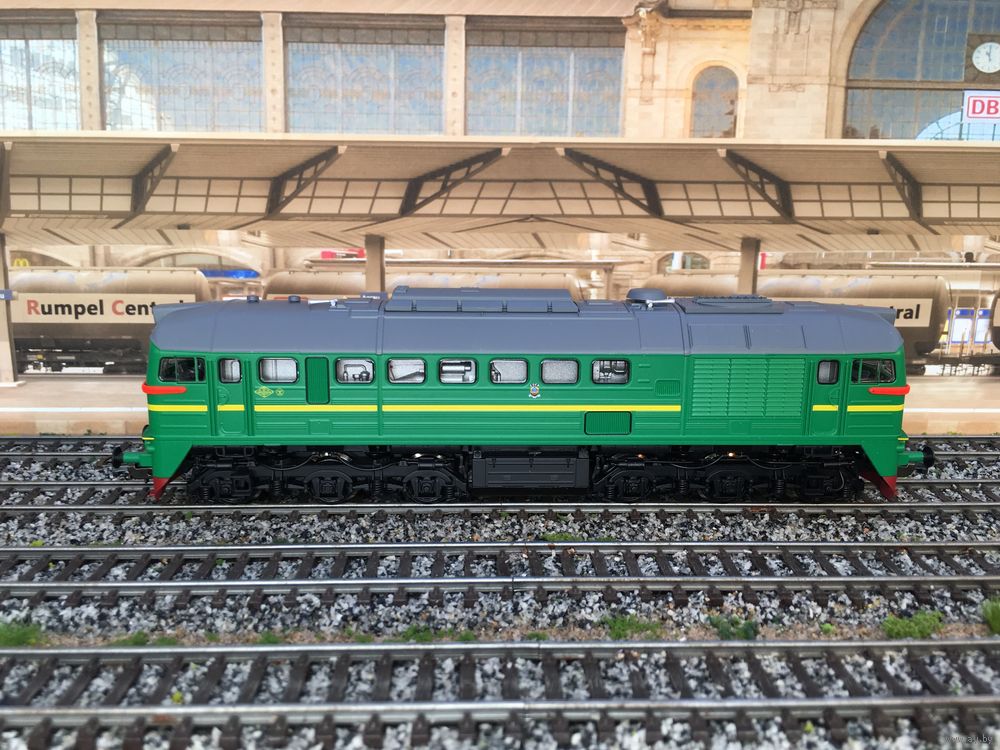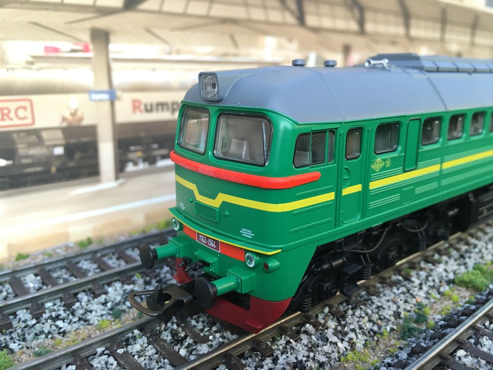PIKO EXPERT. Свет (LED) при движении белый/красный, в цифровом варианте свет в дизельном отделении и кабинах машиниста. Разъём под декодер 22пин. Возможно дооснащение цифровым или звуковым декодером за отдельную плату. В комплекте глухие метельники и шланги.