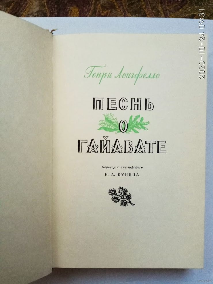 Поэма. Перевод с английского И.А. Бунина. Оформление художника Е. Бургункера. Л. Детская литература 1959г. 232 с., илл., суперобложка, твердый, уменьшенный формат. Плотная мелованная бумага.