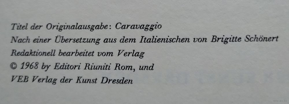 Лонги Роберто. Караваджо // Longhi Roberto. Caravaggio. Альбом на немецком языке. Dresden. Дрезден. Ver Verlag Der Kunst, 1968г., 168 c., илл. Твёрдый переплёт. Суперобложка. Коробка. Большой формат (35*25.5 см).