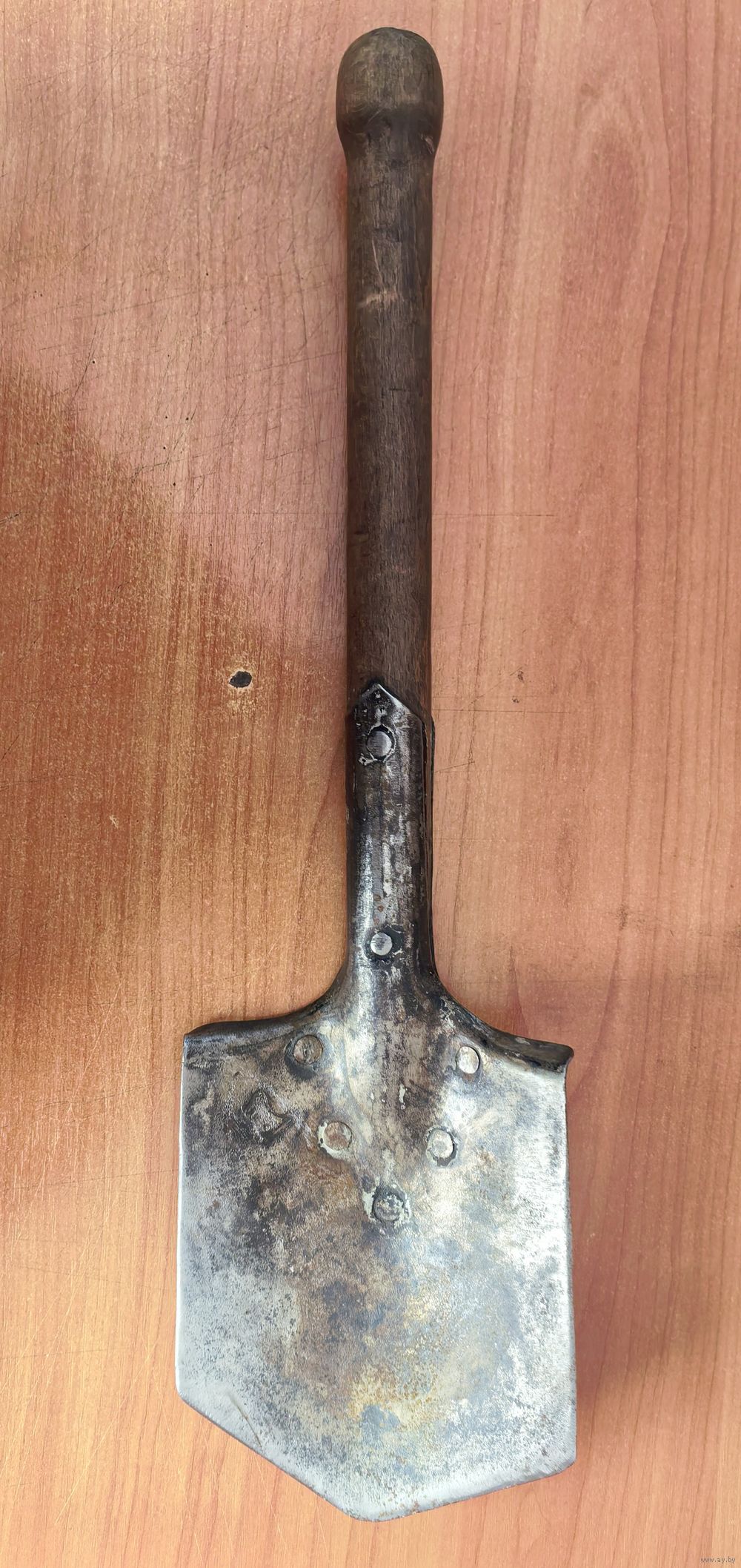 Лопата пехотная с клеймом голова волка. В хорошем состоянии, черенок радной, крепкий.