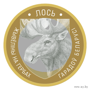 ЛОСЬ серии "Животный мир на гербах городов Беларуси". 2 рубля