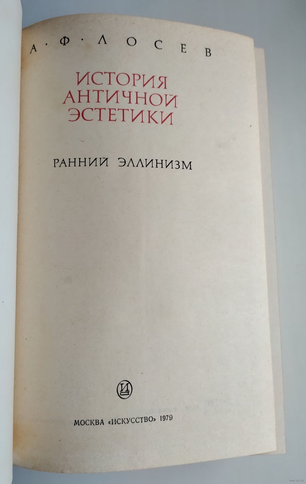 Лосев А.Ф. История античной эстетики. Ранний эллинизм. М.: Искусство, 1979г., 815с. Твёрдый переплёт, суперобложка. Увеличенный формат.