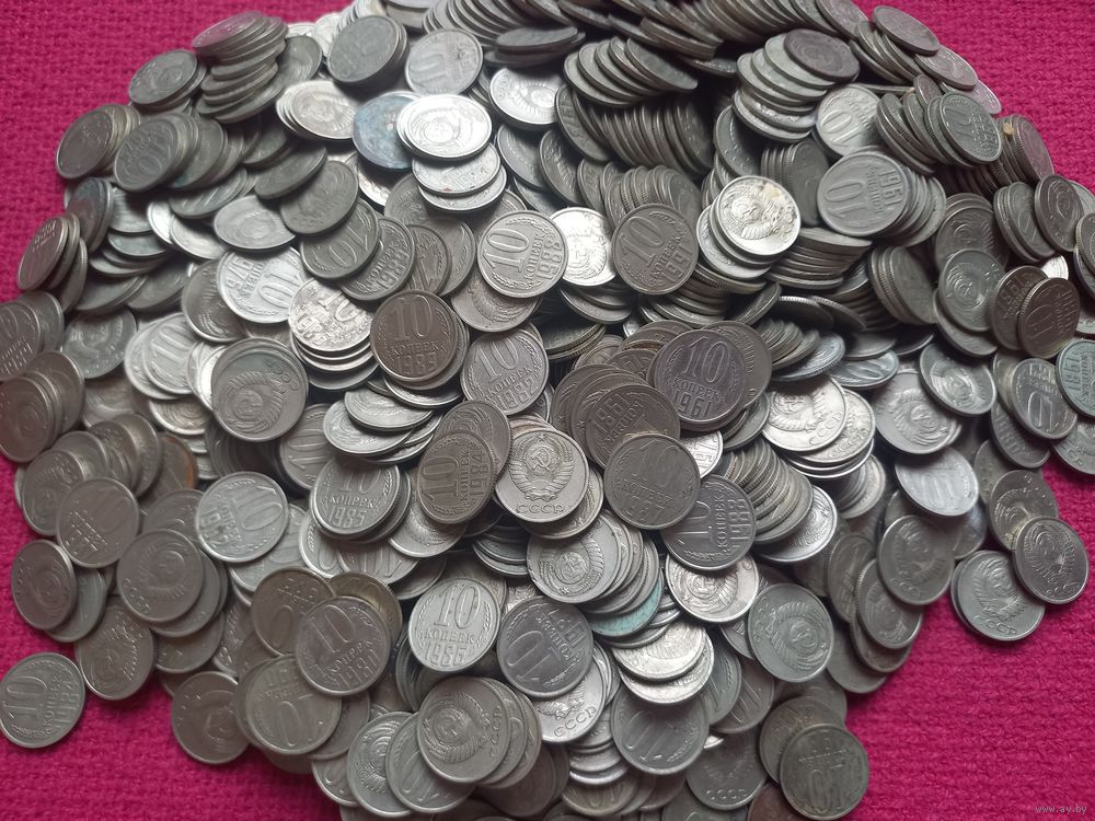 Лот 10 копеек СССР. Вес 1 кг. 850 грамм. 1961-1991 гг.