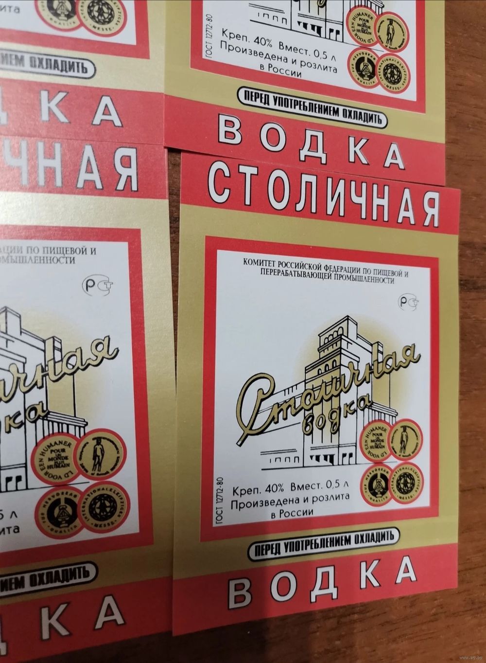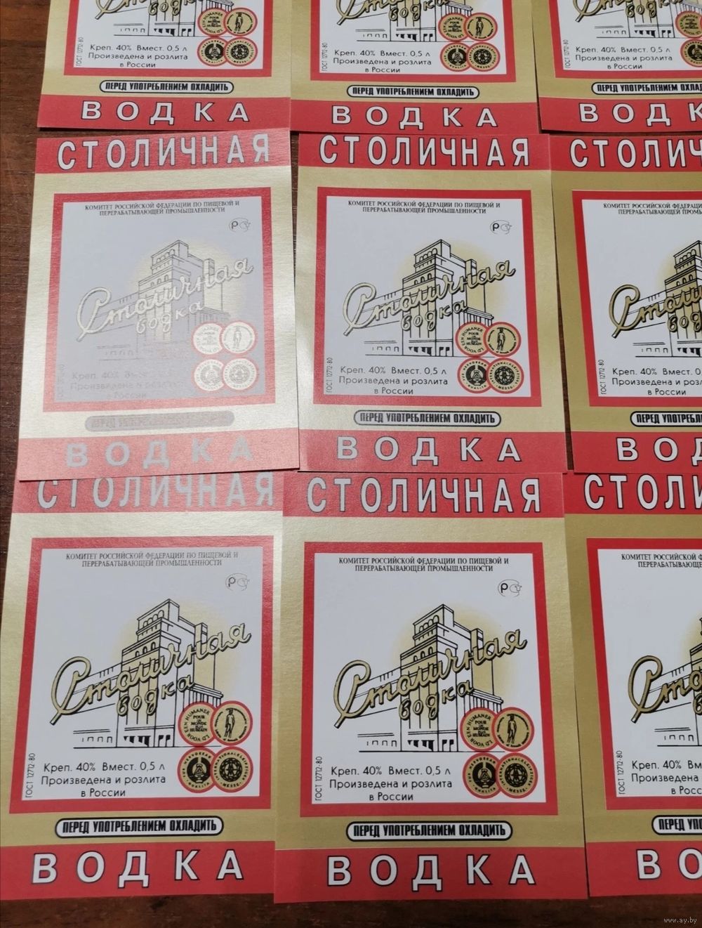Надпись - СТОЛИЧНАЯ ВОДКА. Комитет Российской Федерации пищевой и перерабатывающей промышленности.