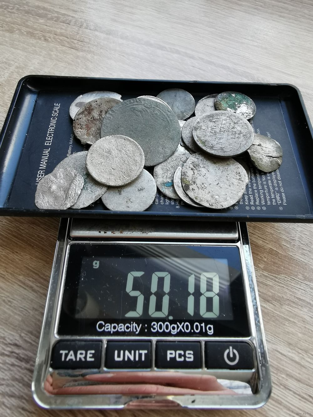 Лот (2) уставших серебряных монет, билон, серебро. С 1 рубля без МЦ