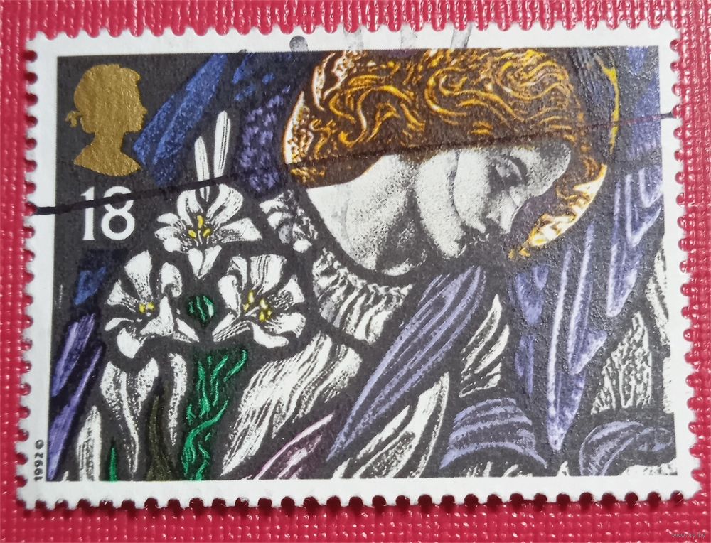 Лот 204. Великобритания (1992) Рождество - витражи. "Ангел Гавриил" Сент-Джеймс, Пэнгборн GB1421