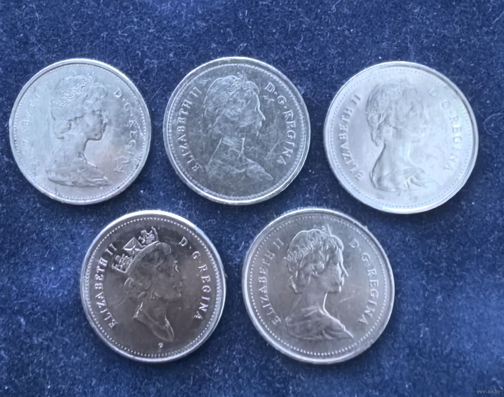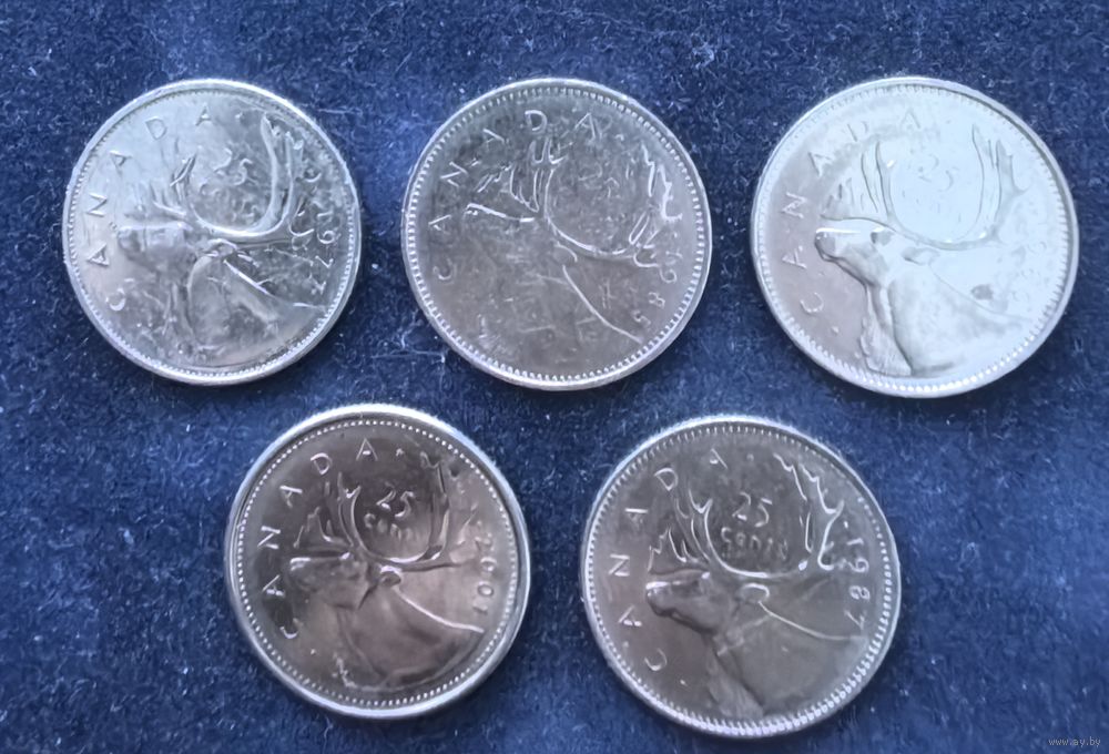 Монеты Канады - 25 центов - 1977, 1985, 1986, 1987, 2001 г.