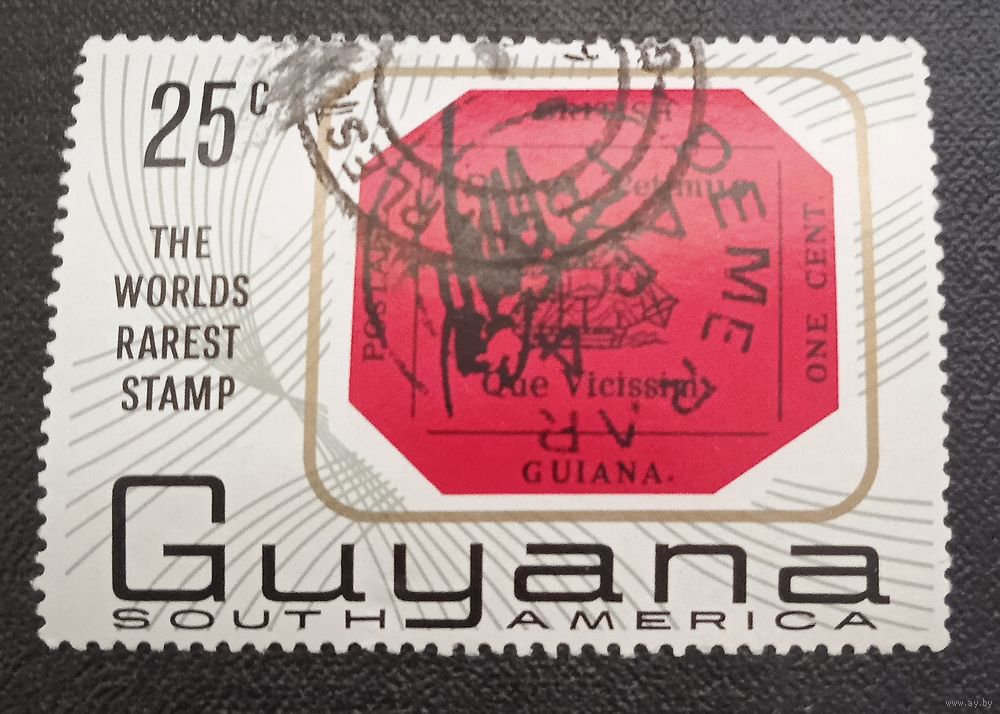 Лот 291 Гайяна (1967) Самая редкая марка мира. Почтовая марка 1856 номиналом 1 цент GY258
