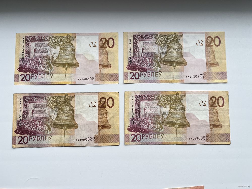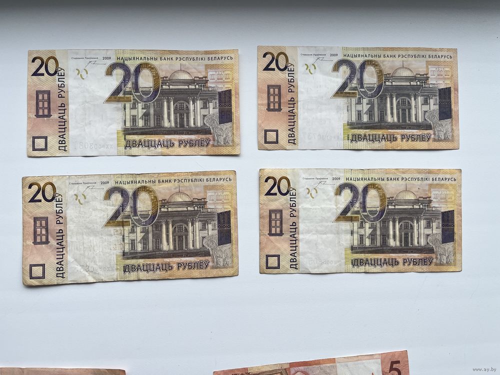 4 банкноты номиналом 20 рублей серии ХХ 2009 года.