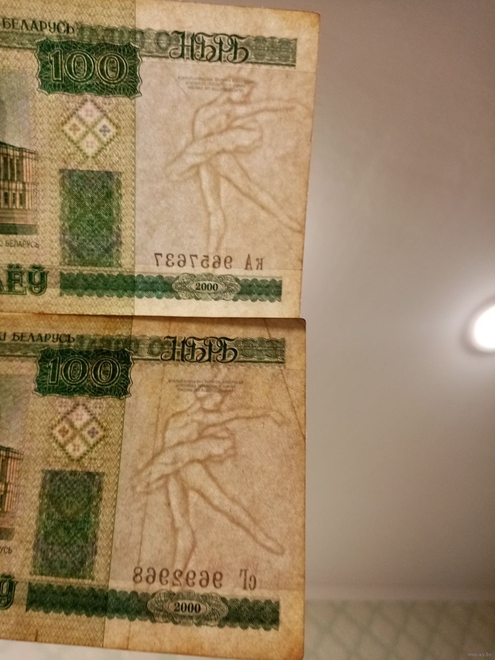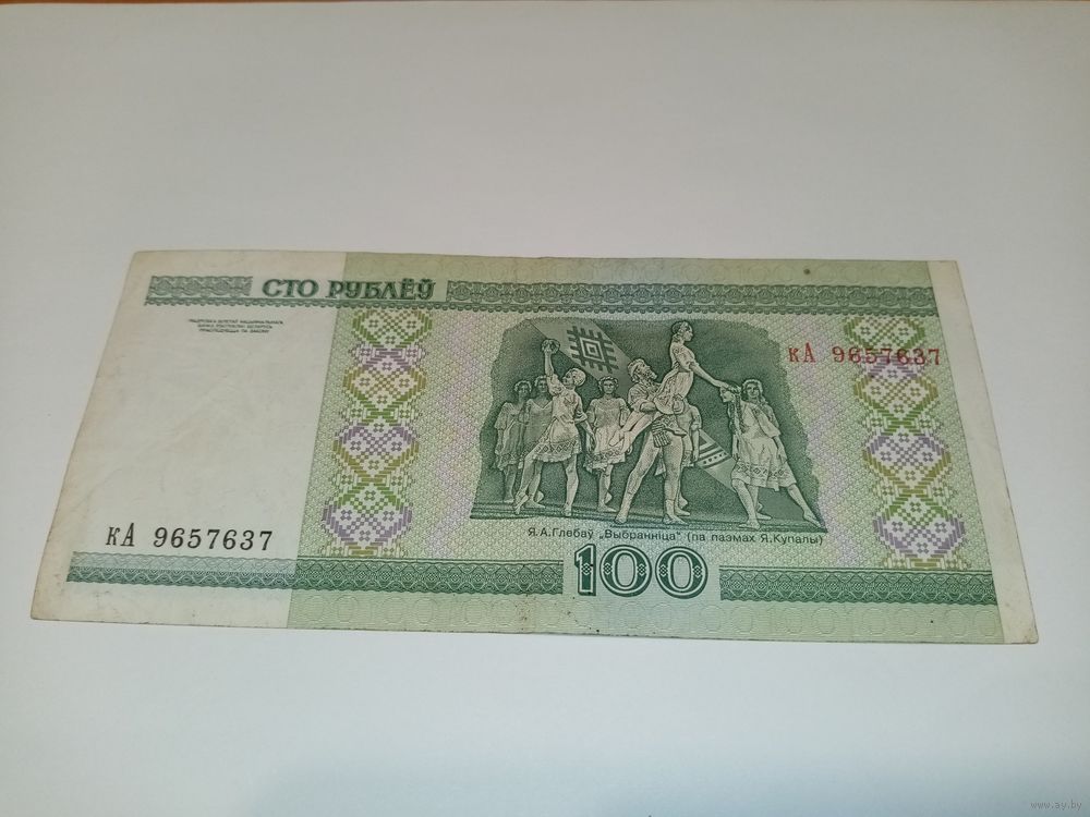 100 рублей. Беларусь. Обр. 2000 г. Серия кА. Смещение водяного знака.
