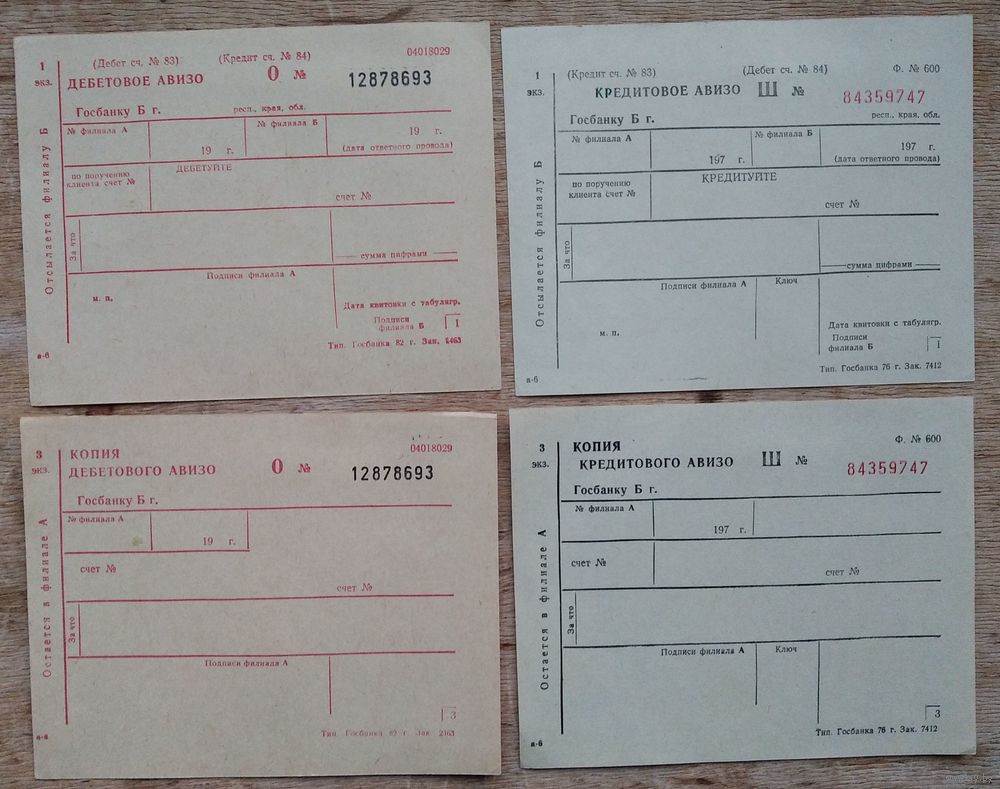 Лот банковских бланков. 1970-е 10 шт. Цена за все.