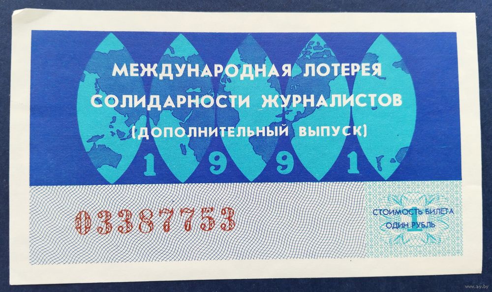 Лот. билет.020. Международная лотерея солидарности журналистов.1991г.
