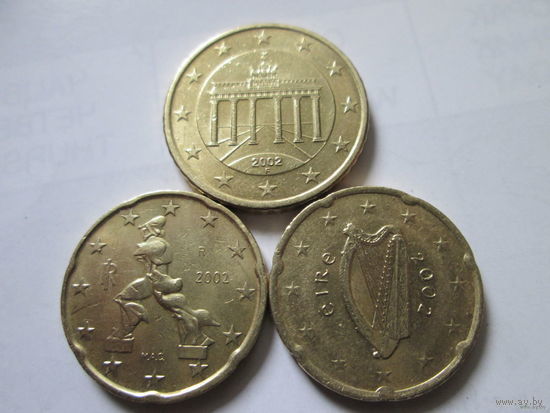 Лот евро монет 1 (1х50 ец + 2х20 ец) Германия, Италия, Ирландия - 2002 г.