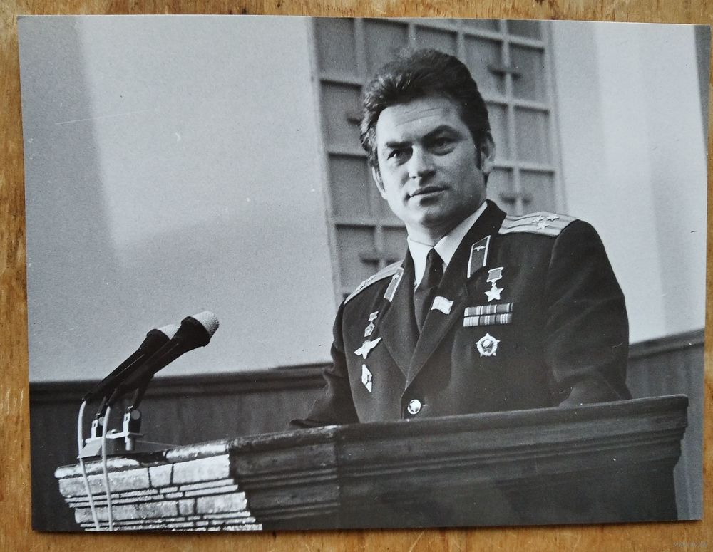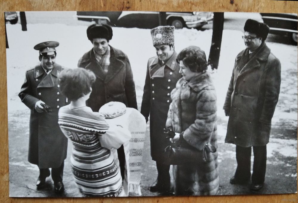 Среди сопровождающих белорусский поэт, Председатель Госкомитета по телевидению и радиовещанию Геннадий Буравкин.