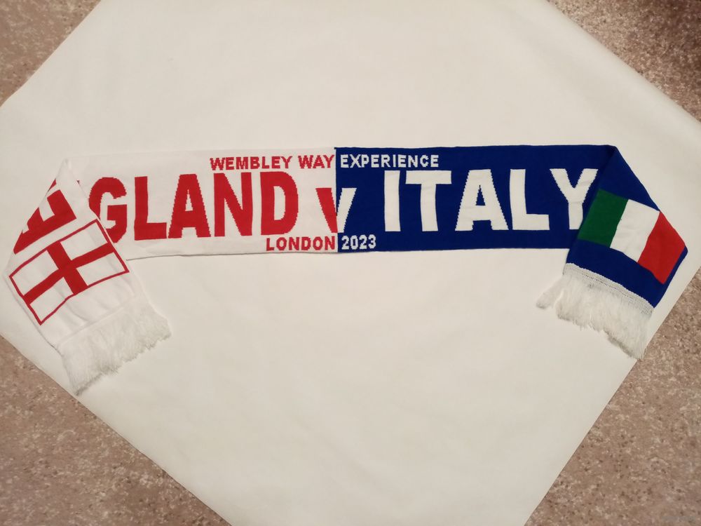 1.Двухсторонний шарф матча Англия-Италия. Лондон, Уэмбли, 2023 год. Отличное состояние. Размер 150 х 17 см