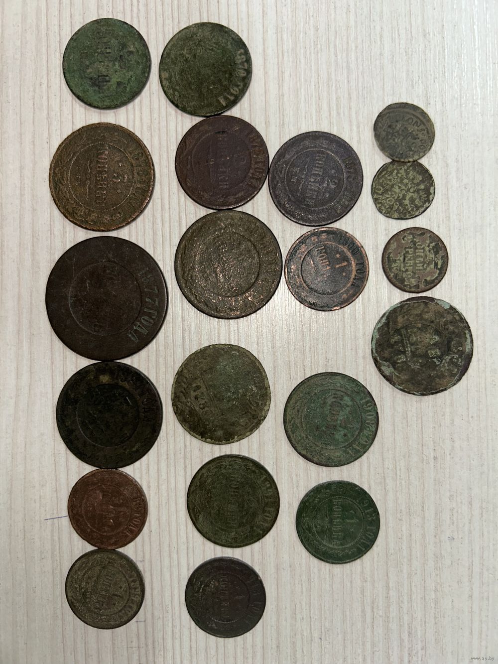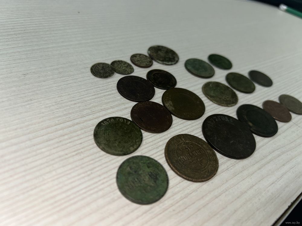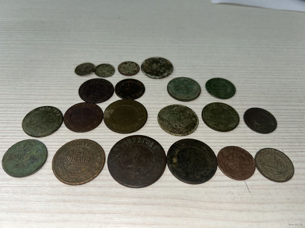 Лот из 20 монет разного собрана царских времен: 2 копейки 1878, 1873, 1891, 1908