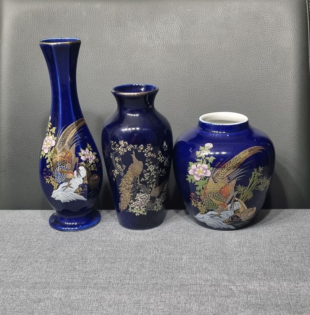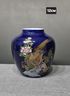 Кобальтовая винтажная ваза в стиле Кутани с изображением фазанов и цветов.