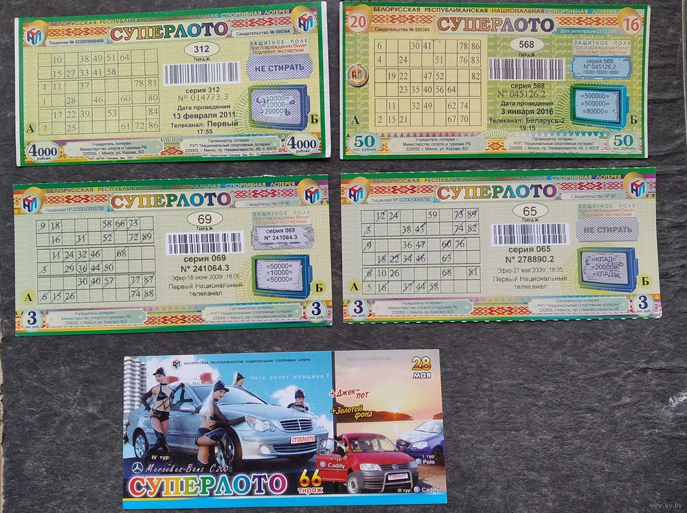 Лот лотерейных билетов РБ. Суперлото. 5 шт. Цена за все.