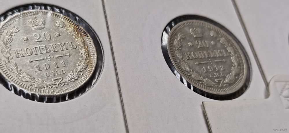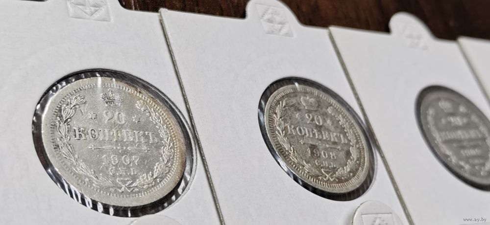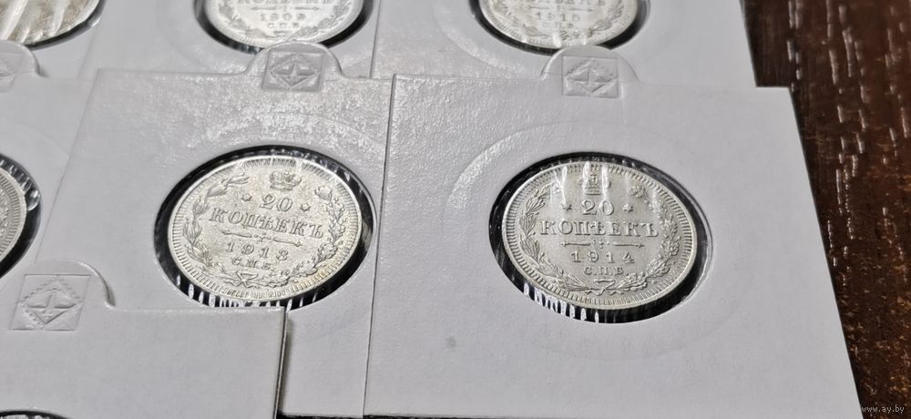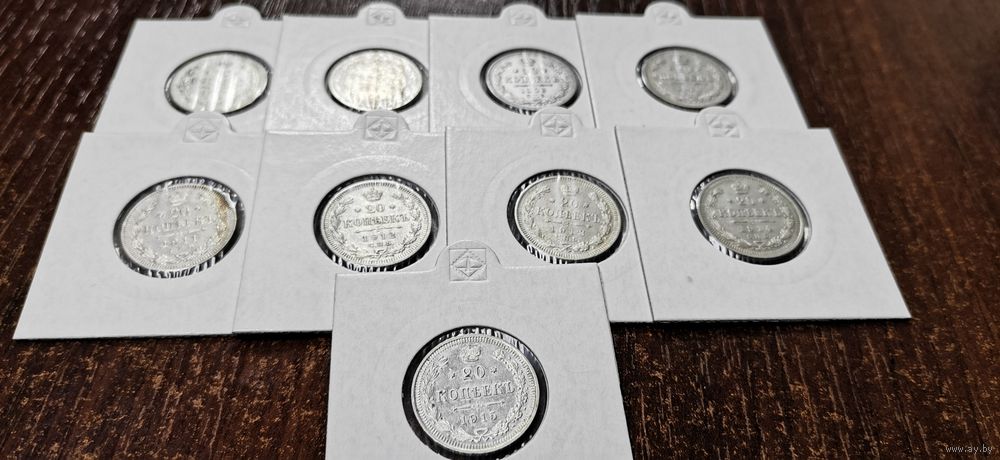Лот монет 20 копеек 1907, 1908,1909,1910,1911,1912,1913,1914