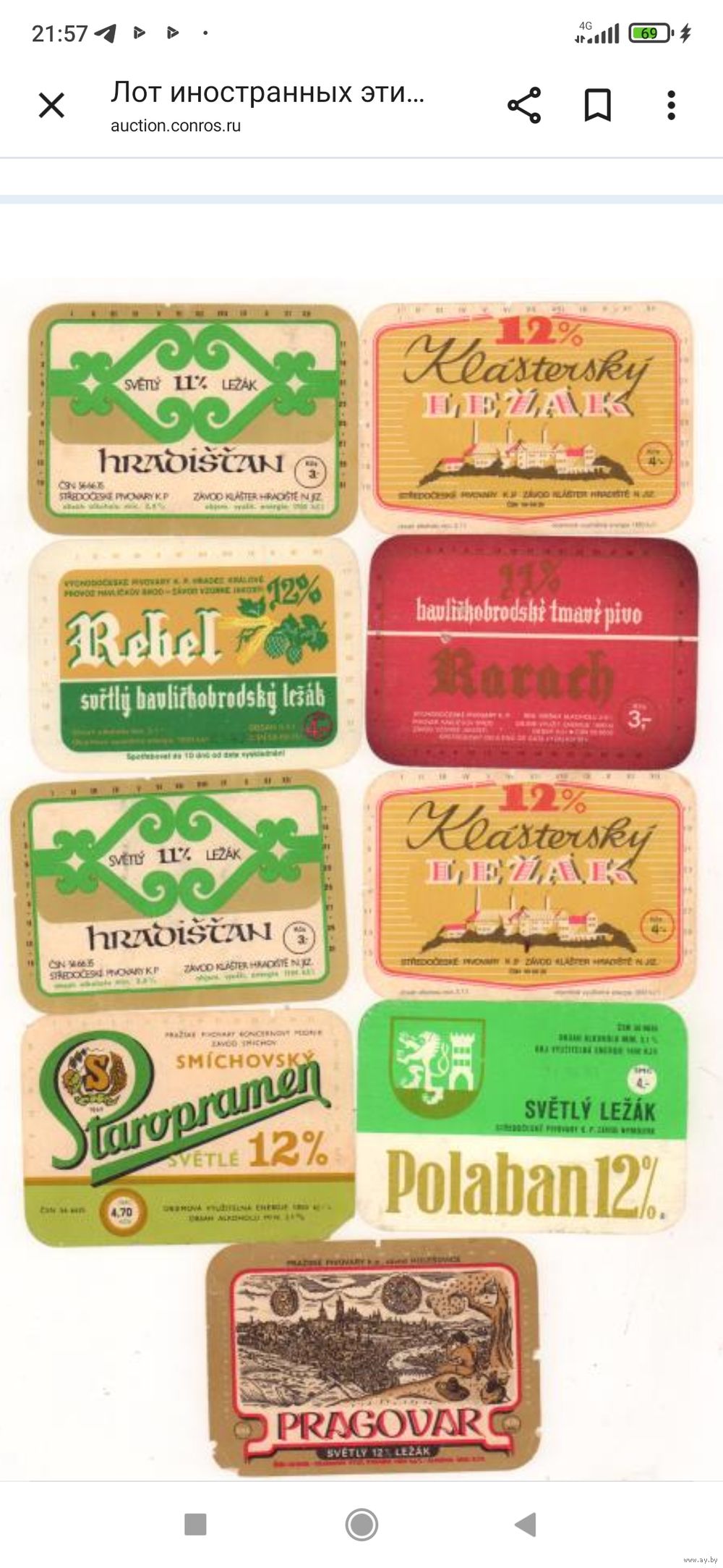 9 пивных этикеток времён ЧССР 70-80- ые годы.