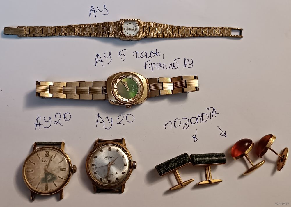 Оригиналы. СССР. Не рабочие. Позолоченные. Верхние подтертые. Доставку оплачивает покупатель при получении лота на Белпочте. Полная предоплата до отправки лота по почте. Смотрите и другие мои лоты, выставленно много интересных лотов с 1 рубля! Качественную упаковку гарантирую! Отправка Белпочтой. Выход на связь в течении трёх дней, выкуп лота в течении семи дней, далее черный список и отрицательный отзыв! Делайте обдуманно Ваши ставки, прежде чем покупать лот, хорошо подумайте, нужен ли он Вам! Ставки не отменяю! Купленный товар возврату не подлежит.Спасибо за проявленный интерес к данному лоту! Всем удачи в торгах! Подписывайтесь на мои лоты, постоянно выставляю много интересных лотов с 1 рубля!