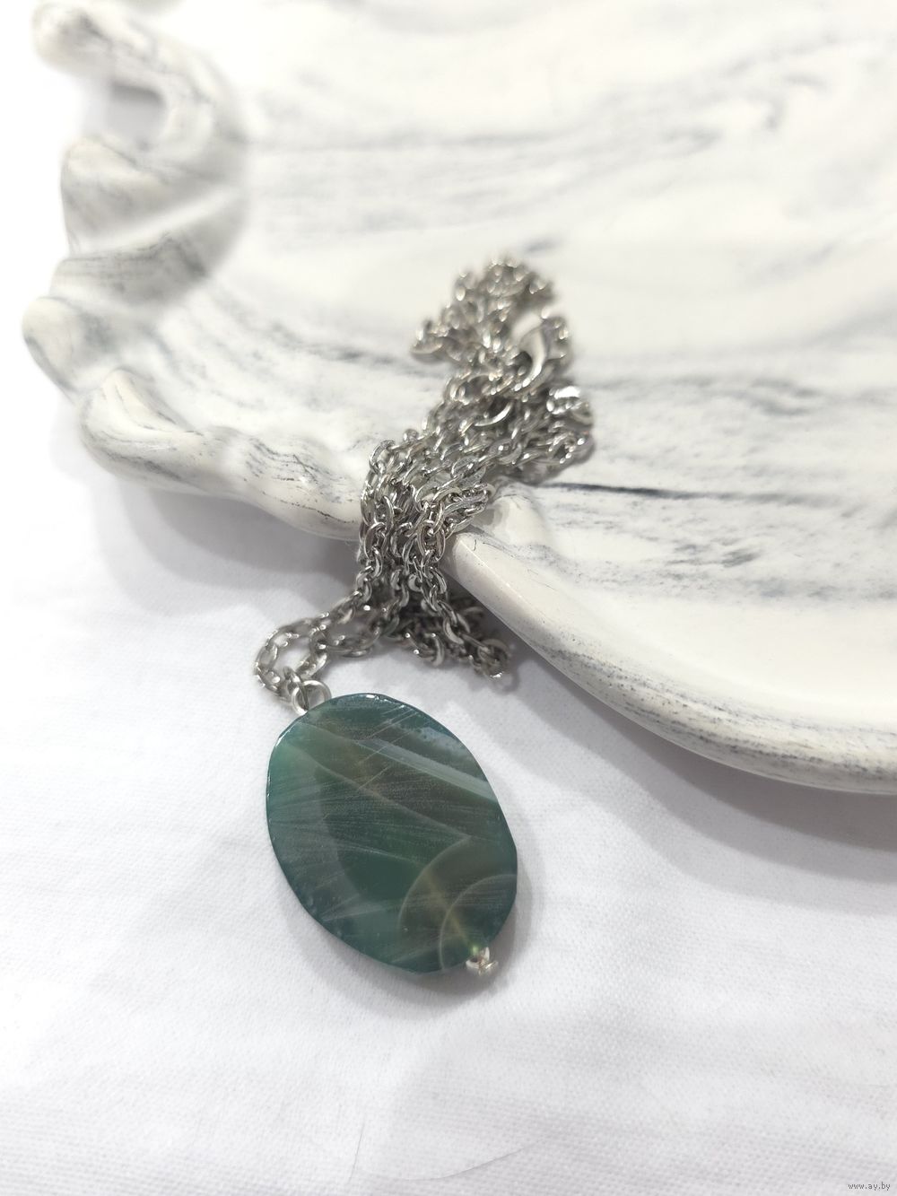 Цепочка сталь. Длина 50 см. Камень Агат. Длина кулона 3 см