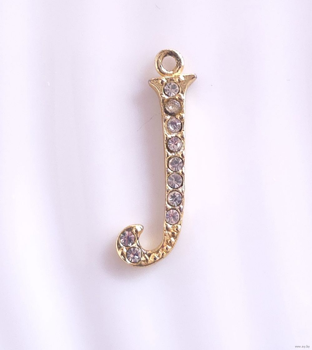 Подвеска-кулон Буква латинская "J" с фианитами, серебро 925